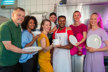 - Sie unterstützen bei der Speisenproduktion in der Küche und im Ausgabebereich